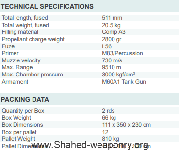 GENERAL SPECIFICATIONS (HESH-T) 105mm high explosive plastic is produced to destroy enemy’s light armored and fortification targets.