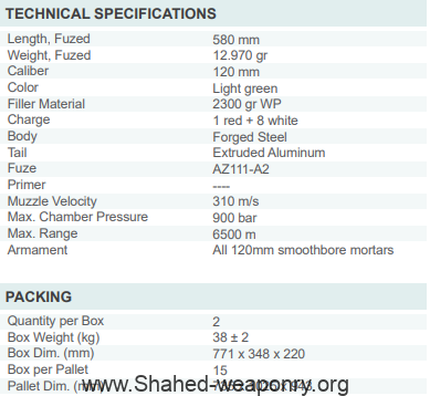 Smoke: 120mm Smoke mortar bomb is one of the smoke generating ammunitions intended to be used for concealing the combatants and materials from enemy observation or for signalling purposes. They use White Phosphorus as the smoke generating agent.