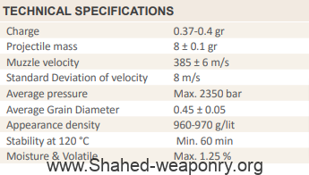 Application: propellant for 9mm pistol cartridge for Parabelum SIG ،S&W ،CZ 99 ،Beretta and equivalent pistol and tommy gun. Packaging: Ball powder (9 ×19mm) is packed in seal metal drum or fiber drum and packages are placed on pallet in Shrinkage form. Net weight of each drum is 40 kg. Storage: Ball powder (9 ×19mm) should be stored in -10°C up to +30°C. Shelf life: 20 yearsTECHNICAL SPECIFICATIONS