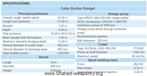 DESCRIPTIONThe Cutter Suction Dredger is reliable, fuel-efficient, and has low maintenance costs and is extremely productive at all dredging depths.The prime mover for the dredge pump is an appropriate diesel engine with low fuel consumption, and low nox and soot emissions.The vessel improvement includes:● An exceptional rate of pumping power, unrivalled in its class● Improved ergonomics● Cutter Special pump combining high efficiency and a large spherical passage – providing high availability● Low maintenance and efficient power distribution with a single diesel engine● Enhanced safety features, such as a separate pump room.● The Designing and manufacturing are according to rules of Classification Society.