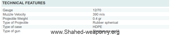 The cartridges including plastic – bodied shotgun shell is filled with rubber spherical projectile.
