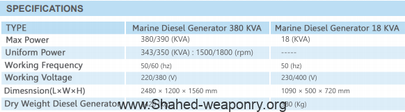 The main application of the diesel generator is in different types of military and commercial vessels and has the ability to be utilized in parallel with the main network or other diesel generators manually and automatically. It also has the capability of automatic programming to turn on/off and Paralleling with respect to power