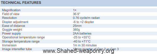 The MNG-87 Night Vision Monocular (goggles) is an electro-optical system which utilizes image intensifier tube in order to perform different ground and marine operations overnight. Having unique features, it is possible for the user to mount it either on the helmet or on the weapon.